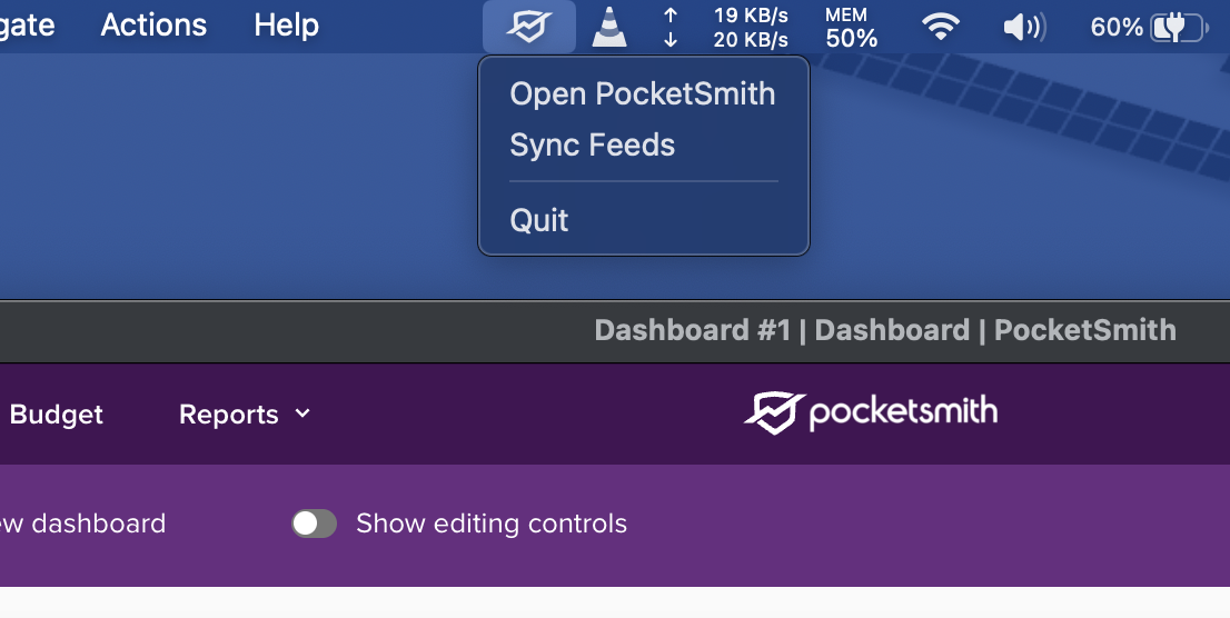A new version of the PocketSmith desktop application has been released, bringing us up to version 0.5.0. This brings a large number of improvements, including a new menu bar (macOS)/taskbar (Windows), or panel (Linux) Icon, which allows you to sync feeds without opening the application.