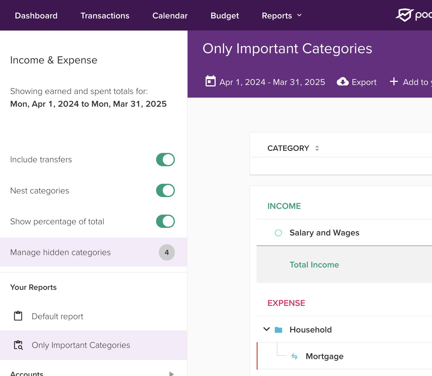 Hot on the heels of the release of saved reports for Income & Expense a couple of weeks ago, categories can now be hidden on a per-saved-report basis, instead of globally for all reports as it did previously.