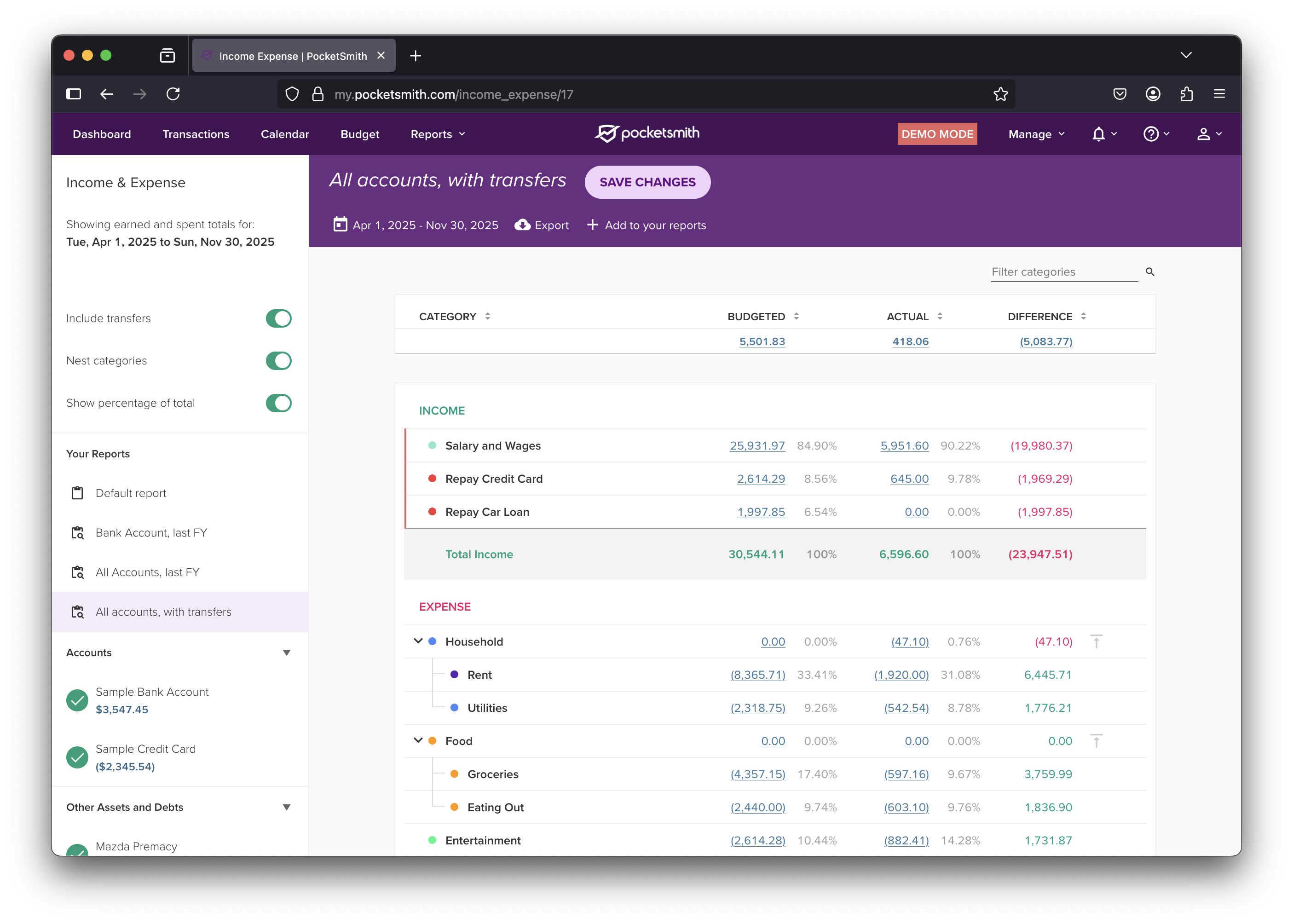 A change that prevents transfer categories from being rolled-up into non-transfer categories, and vice versa, has been released for the Income and Expense and Budget pages.