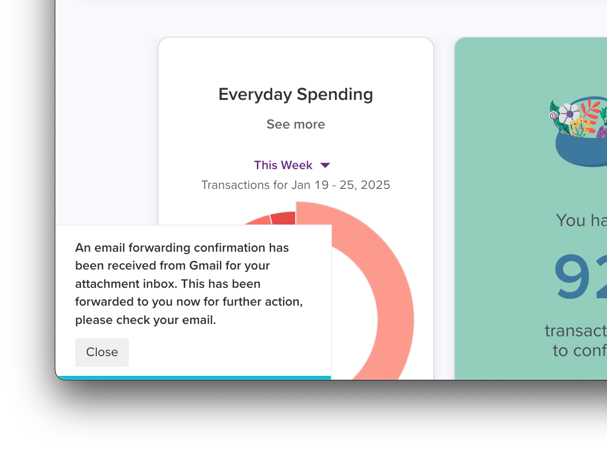 When you set up forwarding for your Attachment Inbox address in Gmail, Google will send a confirmation email through to your Attachment Inbox email address. PocketSmith now catches this email, and forwards the contents through to your email address for confirmation – so you’re in complete control of what email addresses can forward to your Attachment Inbox.
