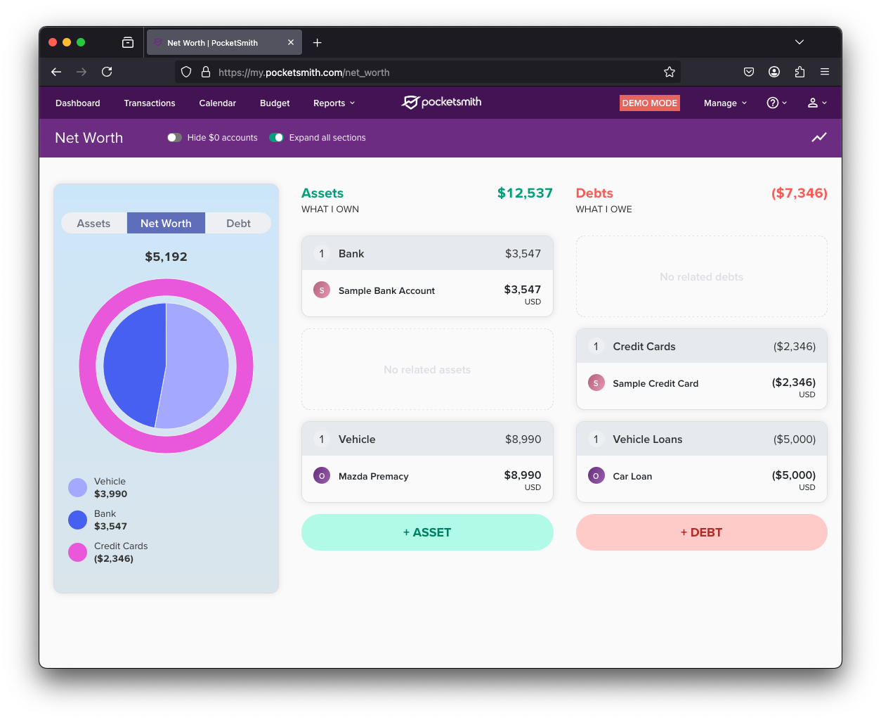 The Net Worth report has been redesigned, and it is now easier to see the breakdown of your net worth into assets and debt, as well as account types.