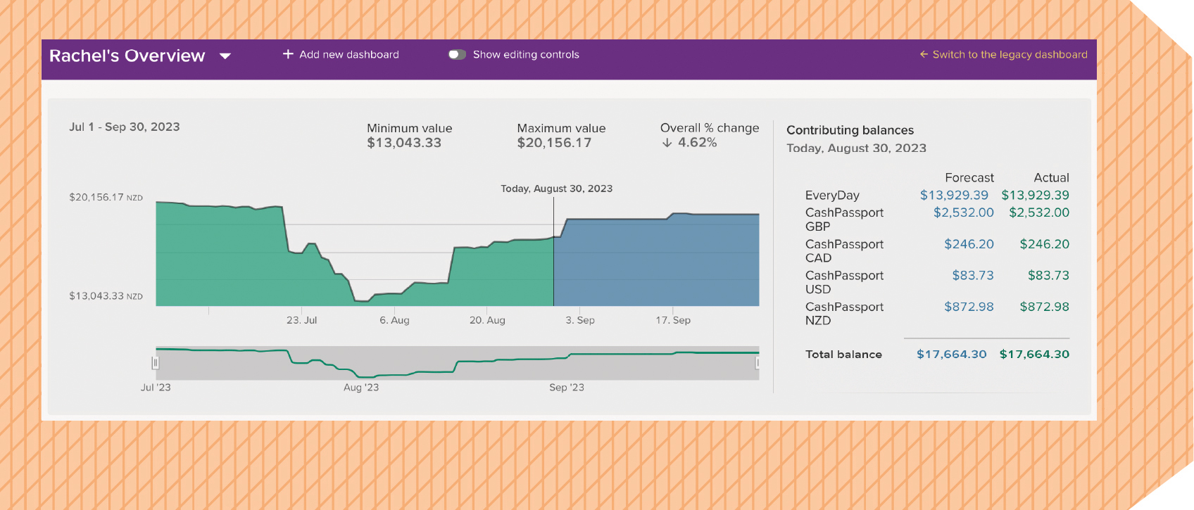 Like the balance graph at the top of my dashboard. It’s one of those stalwart features we take for granted, innit? Sturdy. Dependable. Until I looked at the balance for my CashPassport GBP account, expecting to see 1,190, and I saw… 2,500.