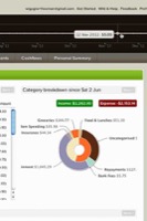 - The spending pie chart shows a breakdown of your activity by category by week or month, and tapping on a category segment on the pie reveals the relevant transactions.