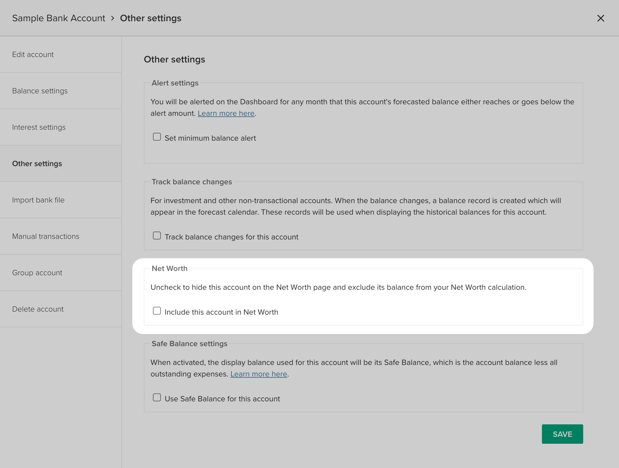 It’s now possible to exclude accounts that you don’t want to be included within the Net Worth report. This might be old accounts or ones that aren’t part of your own net worth.