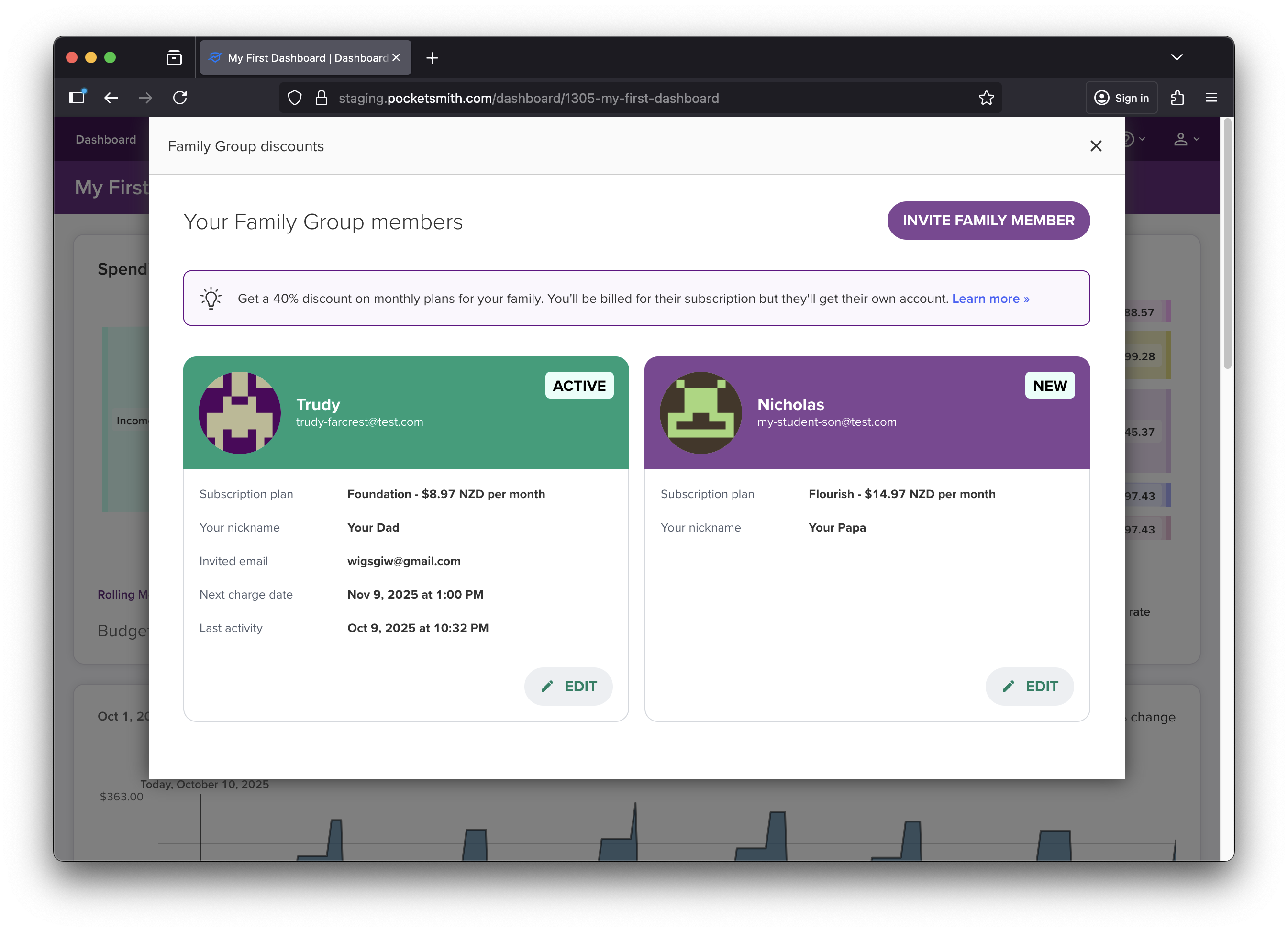 Family Group Discounts have been released! This is a way for existing PocketSmith subscribers to pay for their family member’s monthly PocketSmith subscriptions, for any plan level, and get a 40% discount.