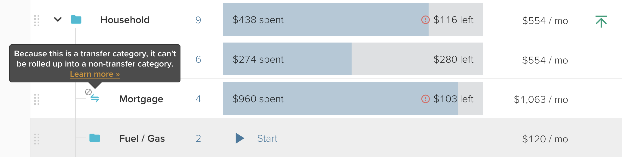 A change that prevents transfer categories from being rolled-up into non-transfer categories, and vice versa, has been released for the Income and Expense and Budget pages.