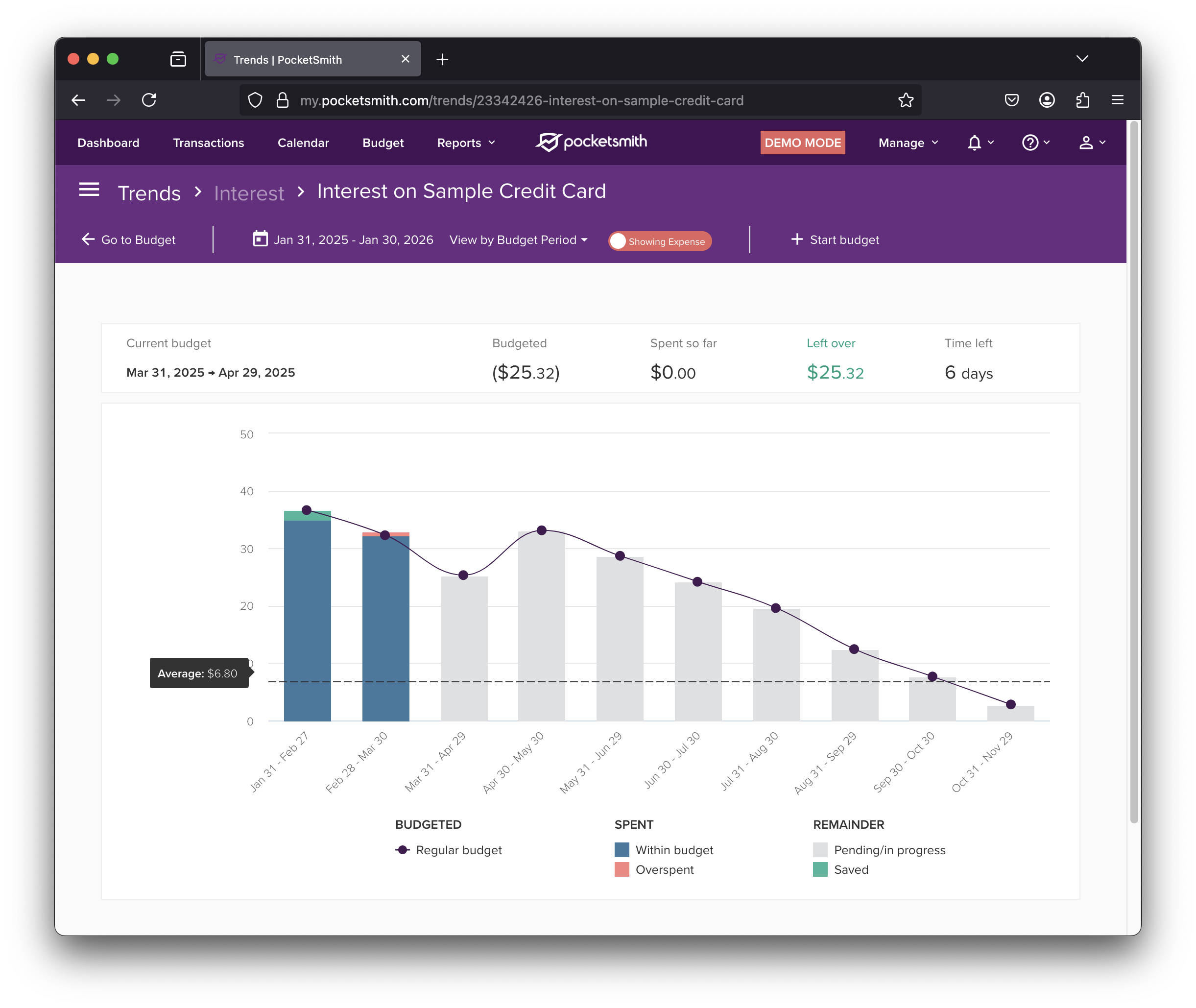 You can assign interest transactions to this category, and you’ll be able to perform budget analysis for your interest in that account, as you would for any other budget.