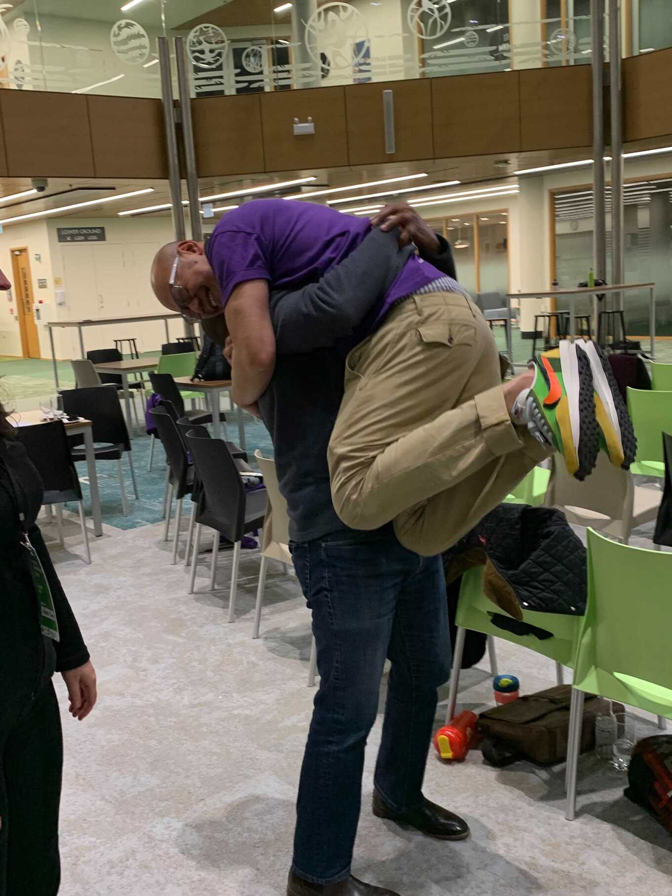Pure celebration! Tibou of Uniform Guru couldn't help but sweep mentor Jason up in a hug when they were announced as winners.