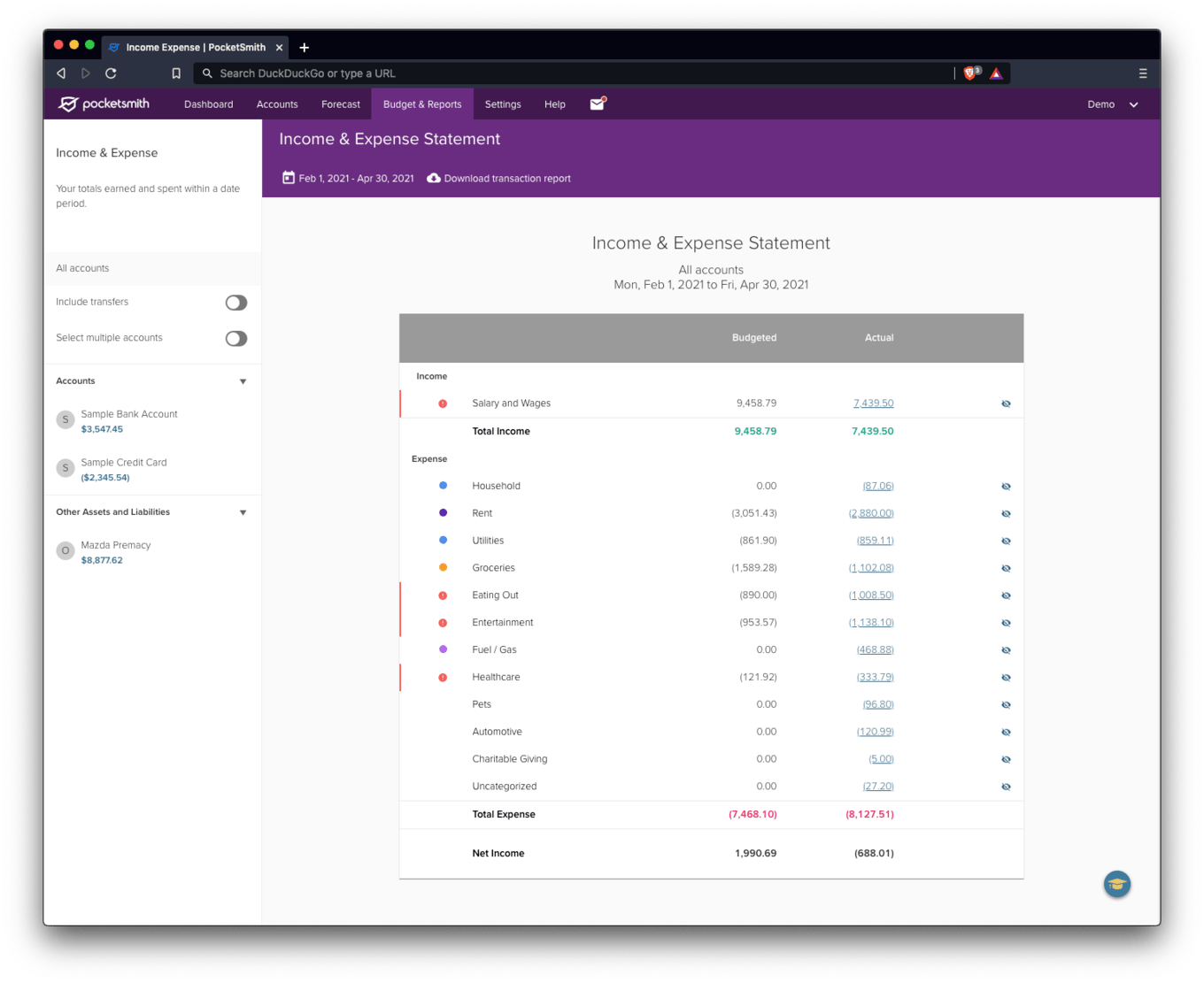 The Income and Expense Statement, April 2021