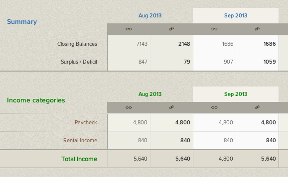 Cashflows now highlight the present month, and the summary is displayed on top