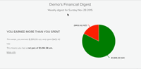 - The spending pie chart shows a breakdown of your activity by category by week or month, and tapping on a category segment on the pie reveals the relevant transactions.